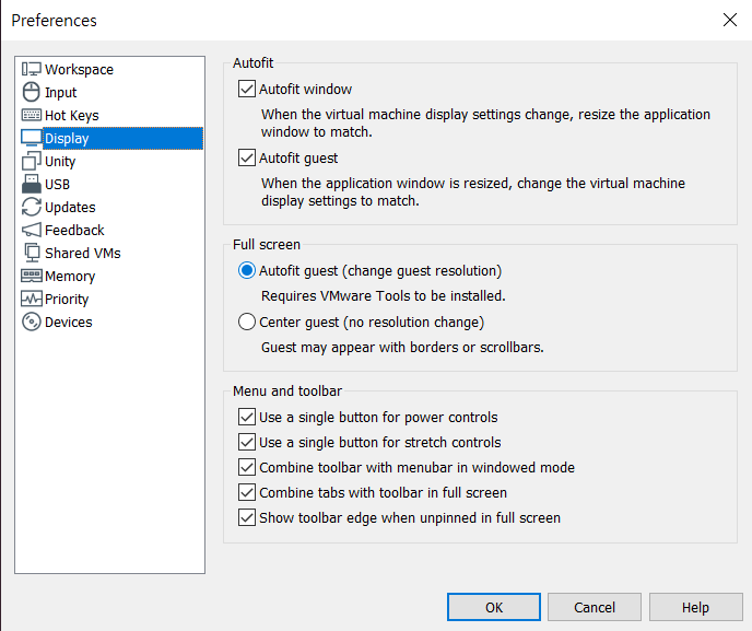2. 다음으로 Edit -> Preferences -> Diaplay에서 Autofit Guest 를 활성화 합니다.
